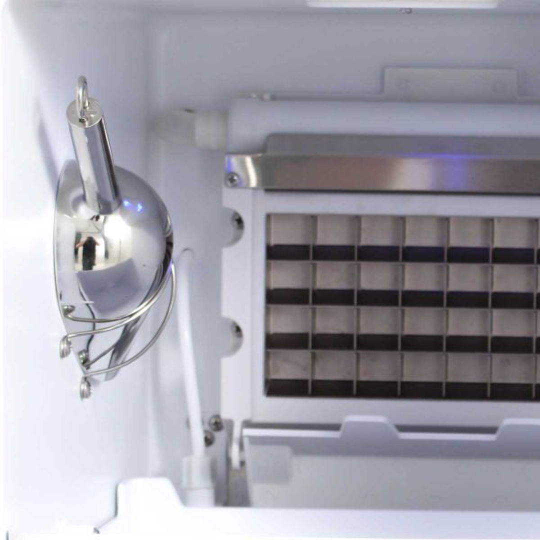 - Produces up to 50 pounds of cube-shaped ice per day with a 25-pound storage capacity