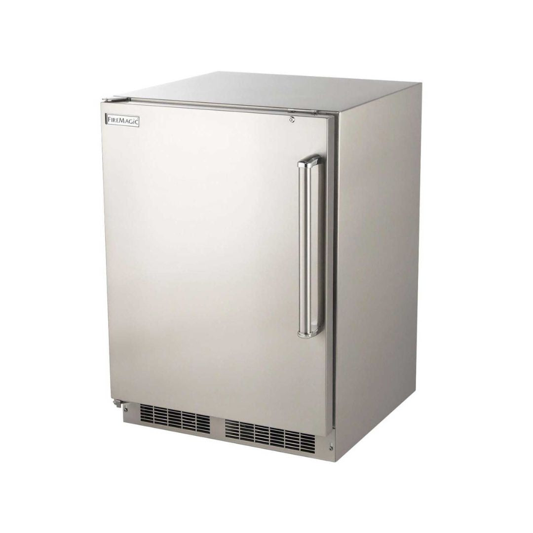 Enjoy the convenience of a refrigerator right in your outdoor kitchen with the Fire Magic 24-Inch 5.1 Cu. Ft. Left Hinge Outdoor Rated Compact Refrigerator. Designed for outdoor use with a UL outdoor rating, this compact refrigerator keeps your cold items accessible while you grill, eliminating the need to run back inside. Featuring digital controls with an audio alarm and thermometer, you can easily monitor and adjust the temperature. The refrigerator also includes internal LED lighting for visibility, two adjustable shelves, and built-in door storage for versatile storage options.