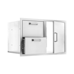 Designed to meet the needs of outdoor chefs, this combo unit provides exceptional storage and accessibility. The durable construction ensures it remains functional and visually appealing even after years of exposure to harsh conditions. The reversible access door enhances flexibility, while the polished finish and flush-mount design integrate seamlessly into any outdoor kitchen style.