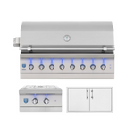 This all-in-one package includes everything you need to start grilling like a pro, featuring a vinyl grill cover, rotisserie kit, grate lifting tool, stainless steel griddle, drop-in infrared sear burner, fuel kit, care kit, leather glove kit, a propane power burner, and a 36-inch access door.