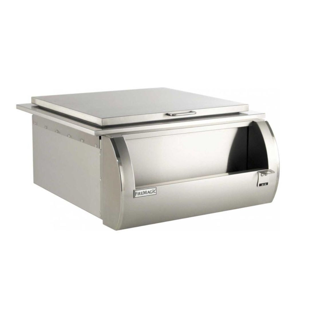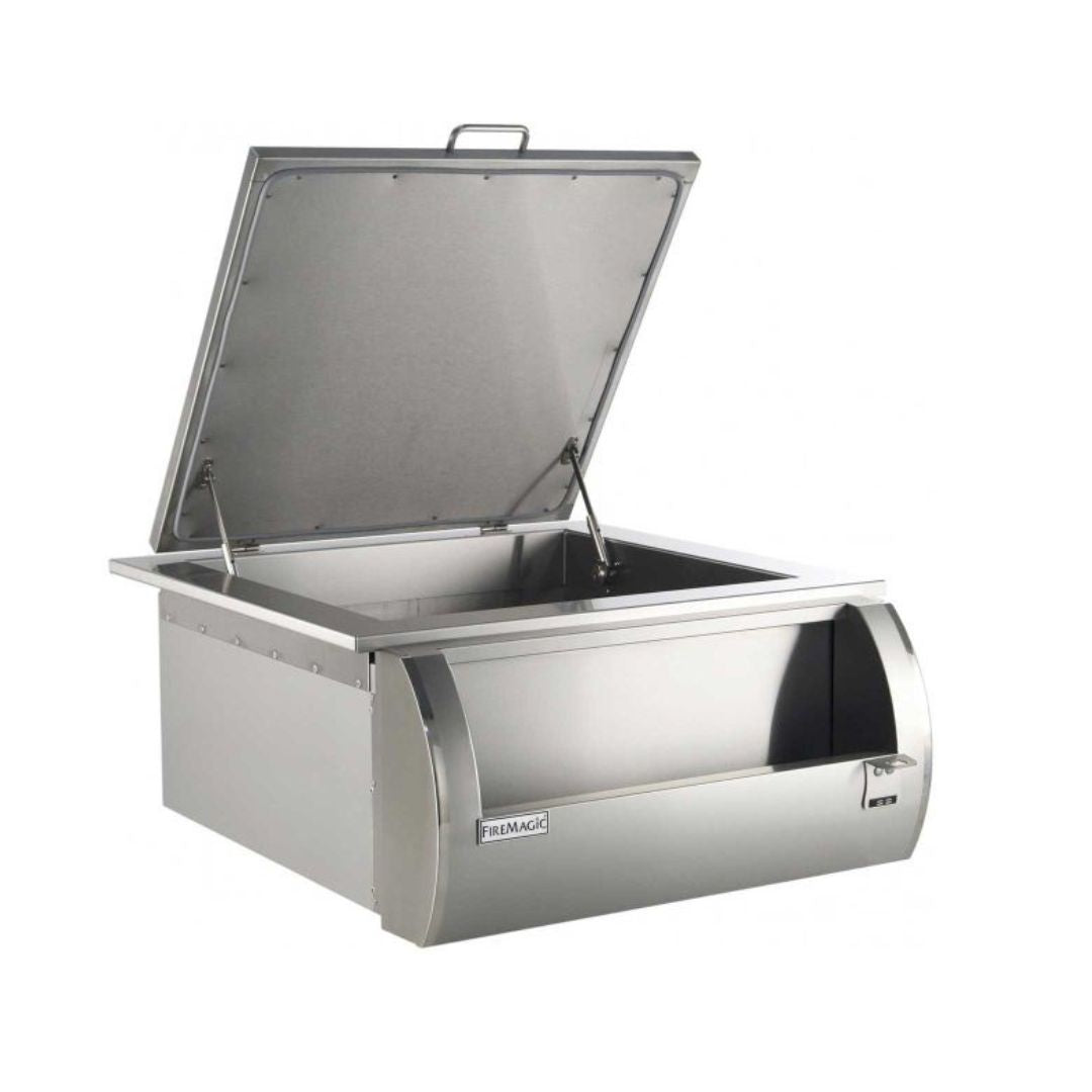 Keep your beverages cold and easily accessible with the Fire Magic Echelon Diamond Built-In Refreshment Center. Featuring dual sliding doors for easy access to ice and drinks, this refreshment center includes a large bin that holds approximately 30 pounds of ice, a front storage area for bottles, and a built-in drain for quick and convenient cleaning. Proudly made in the USA, it’s the perfect addition to your grill island for enhanced outdoor entertaining.