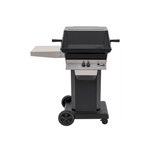Introducing a high-quality grill designed for convenience and efficiency, featuring a stainless steel side shelf that enhances your cooking space. The grill is supported by a sleek black powder-coated aluminum pedestal, ensuring both durability and a modern aesthetic.