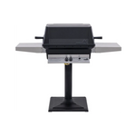 Introducing our premium grill, designed for both functionality and durability. This impressive grill features two stainless steel side shelves, providing ample space for food preparation and serving, while the sturdy 24-inch black post ensures stability.
