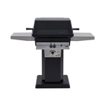 Constructed from durable cast aluminum, this grill features a permanent housing that guarantees long-lasting performance. The package includes two stainless steel side shelves for added workspace, a black powder-coated aluminum pedestal, and a stylish black flat patio base, making it a fantastic addition to any outdoor cooking space.