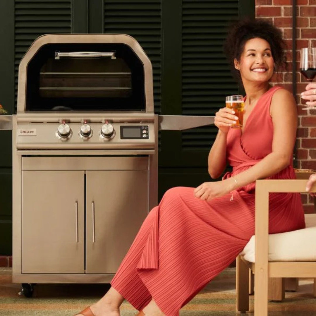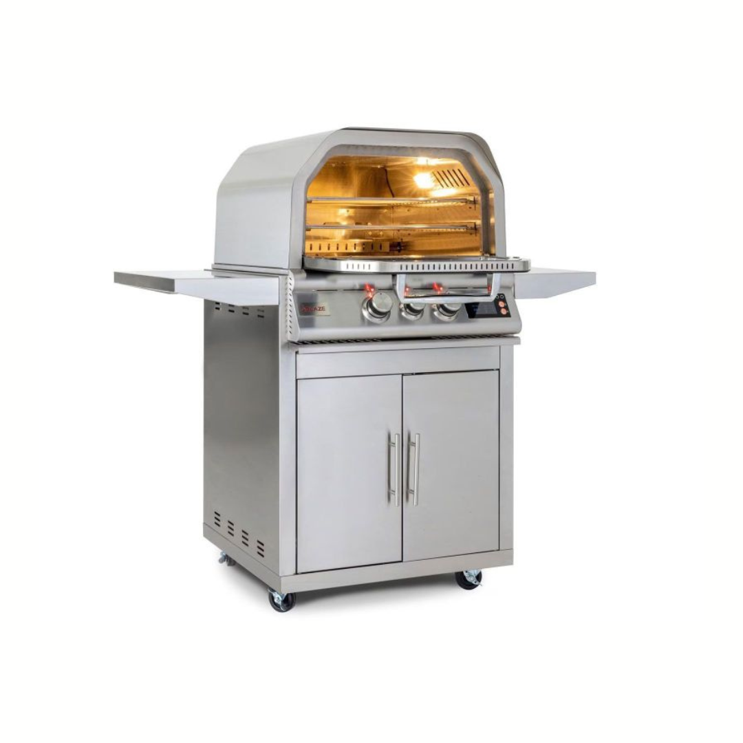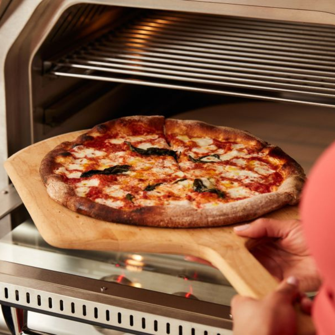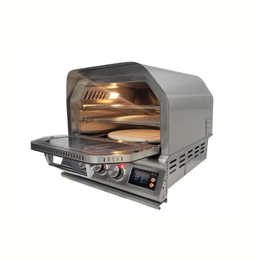 Elevate your cooking experience with our innovative, stylish pizza oven designed to deliver restaurant-quality results in your own kitchen. Featuring a sleek, contemporary design, this versatile appliance is perfect for making delicious pizzas, roasted meats, and a variety of other culinary creations. The 17-inch rotating ceramic pizza stone ensures even baking every time, giving you perfectly cooked pizzas with a crispy crust. Its vertical rotisserie rod with drip tray, along with two spacious cooking racks, allows you to prepare multiple dishes simultaneously, making it ideal for family dinners or entertaining guests. The intuitive digital display, paired with connected meat probes, provides precise temperature control and accurate cooking times, ensuring your food is cooked to perfection. Additionally, interior lighting and double-pane glass oven doors help conserve heat and improve visibility for an efficient cooking process.