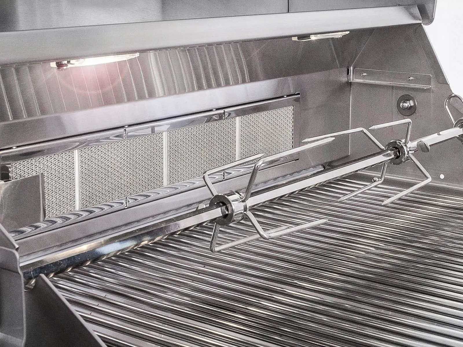 The included gourmet package enhances your grilling experience, featuring a rotisserie burner and kit, dual interior lights, a griddle plate, a griddle remover that doubles as a bottle opener, and a smoker box. This comprehensive setup equips you with everything you need to become a true grill master.