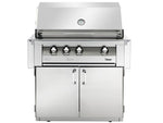 Cook powerfully and efficiently outdoors with the Vintage Grills 36-Inch Freestanding Gas Grill with Flush Mounted Infrared Rotisserie Burner. This grill comes with a 7,000 BTU smoker burner for smoking your food locally. There is a 12,000 BTU flush mounted infrared rotisserie burner that allows you to roast meats at the same time that you are grilling on the stainless steel grill grates. It has an insulated canopy which is double walled to offer seamlessly polished edges. You will also find an integrated thermometer in the hood for accurately monitoring the temperature. Thanks to the three 27,500 BTU burners, the heat is strong and consistent.