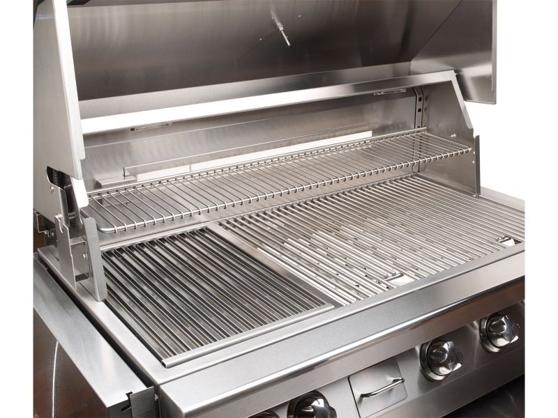 - Dual 15,000 BTU Flush mounted Infrared Rotisserie burner and polished stainless steel grill grates